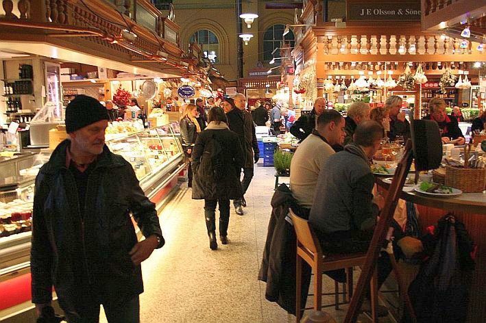Saluhallen: Einkaufen und Schlemmen in einem. Die Saluhallen sind ein wahres Einkaufsparadies für Feinschmecker. Gleich ob fangfrischer Fisch, Muscheln oder Krabben. Die Händler lassen hier keine Wüsche offen. Und: Gleichzeitig kann man hier auch sehr gut essen. Etwas Zeit sollte man allerdings mitbringen. Es kann schon mal passieren, dass der Gast auf einen freien Platz etwas warten muss. Fotos: Andreas Gillner